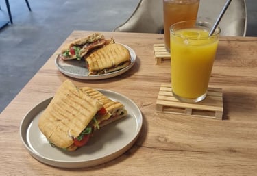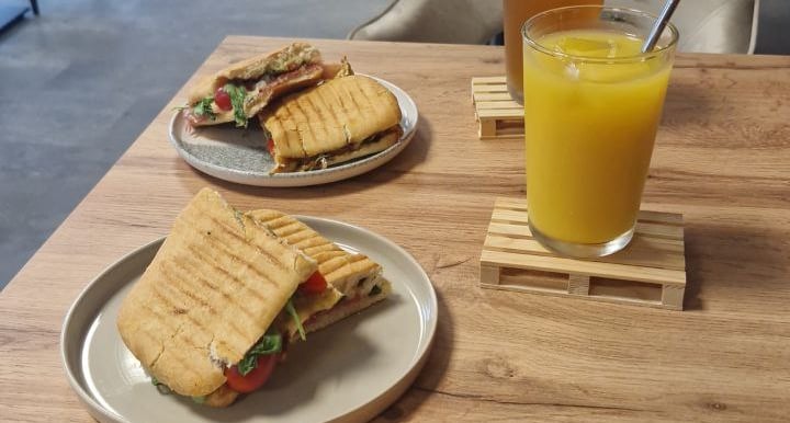 Die Atmosphäre ist gemütlich und die Preise sind günstig. Das Essen ist absolut köstlich, besonders das Chicken-Pesto-Sandwich.