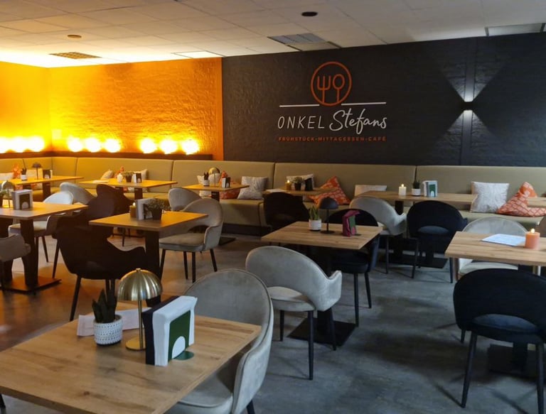 Genießen Sie ein köstliches Frühstück und Mittagessen in einer warmen, gemütlichen Atmosphäre im Café-Bistro Onkel Stefan.
