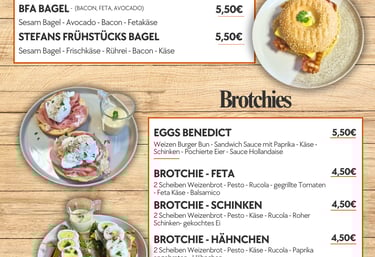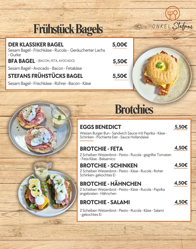 Gönnen Sie sich unsere frisch zubereiteten Frühstücksbagels, die sich perfekt für ein herzhaftes Frühstück eignen.